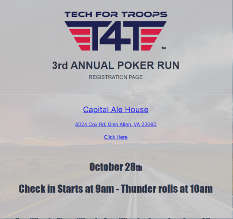 Keith is leading a ride to the Tech for Troops Poker Run,